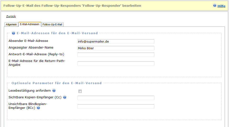 korrekt ein. Die E-Mail-Adresse für die Return-Path-Angabe wird für die